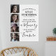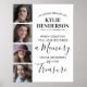 Affiche commémorative personnalisée avec un collage de 4 photos de la personne dont vous vous souvenez, une citation sympathique qui dit "quand quelqu'un que vous aimez devient un souvenir, ces souvenirs deviennent un trésor", leur nom, et les dates de naissance et de mort.