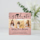 Share the joy of a high school or college graduation for her with these square custom 4 photo collage pink and black announcements. All pictures and wording are simple to personalize. (IMAGE PLACEMENT TIP: An easy way to centre a photo exactly how you want is to crop it before uploading to the Zazzle website.) This template can be customized with any details of your choice, such as party invitation info, parents' names, special honours, degree title, favourite inspirational quote, graduate's contact info, future education plans, or new job position. Design features a rose gold faux foil background, black mortar board cap, handwritten style script calligraphy, modern minimalist typography, and four photos of your choice, such as senior pictures or images from the commencement ceremony. Please note that rose gold is printed colour, not metallic foil. These elegant graduation announcement cards are a trendy and chic way to share your special day celebration with family and friends. Congratulations to the graduate!