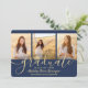 4 Photo Graduation Collage Script Navy Blue & Gold Announcement