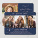 4 Photo Graduation Party Navy Blue & Pink Script Invitation