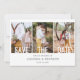 Share the delightful news of your engagement as well as four photos with these elegant wedding save the date flat cards invitation. All photos and text are simple to customize. (IMAGE PLACEMENT TIP: An easy way to centre a photo exactly how you want is to crop it before uploading to the Zazzle website.) The design features modern minimalist typography and 4 of your custom pictures (3 on front and 1 on back). This unique engagement announcement note card is an elegant way to inform friends and family and give them a glimpse of your upcoming special day celebration.