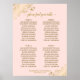 Ce beau tableau de sièges mariage de 4 tables comprend des assignations de table pour 40 personnes, avec 10 personnes à chaque table. Le design est simple mais élégant avec du texte doré sur un arrière - plan de couleur rose pâle et clair, et dispose d'une filigree floral dentelle dans les coins et un titre de calligraphie script sophistiqué avec "s'il vous plaît trouver votre table." Sophistiqué et chic.