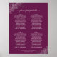 Ce beau tableau de sièges mariage de 4 tables comprend des assignations de table pour 40 personnes, avec 10 personnes à chaque table. Le design est simple mais élégant avec du texte gris sur un arrière - plan magenta ou cassis violet, et dispose d'un faux fil argenté floral en dentelle dans les coins et d'un titre de calligraphie script sophistiqué avec "s'il vous plaît trouver votre table." Sophistiqué et chic.