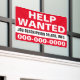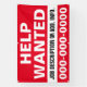 Are you hiring and want to get the word out? This large 4' x 6' single sided "Help Wanted" banner with job description line and phone number, is fully customizable! For indoor or outdoor use. All banners are hemmed and welded for a clean finished edge. For easy outdoor installation, on any surface, use the grommet option.