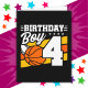 This basketball birthday party design is perfect for a 4 year old boy's basketball theme birthday party to celebrate their 4th birthday! Great for kids that love to play basketball, watch basketball or future basketball star players! Features a basketball graphic w/ number 4 for a boy's 4th birthday.