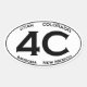 This 4C - Four Corners USA Euro style acronym oval sticker represents the intersection of Utah, Colorado, New Mexico, and Arizona. The area known as Four Corners is the only location in the USA where a person can step across 4 states at once. The acronym 4C also refers to the Four Corners region in general.