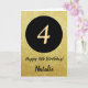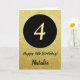 4ème Joyeux Anniversaire Carte de Parties scintillant Noir et Or avec nom personnalisé. Pour plus de personnalisation, cliquez sur le bouton "Customiser" et utilisez notre outil de conception pour modifier ce modèle.