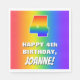 This joyful and vibrant birthday paper napkin design features a large number “4” with a colourful rainbow spectrum inspired gradient pattern, along with the message “HAPPY 4th BIRTHDAY,”, and a personalized recipient name. The background also features a cheerful multicolored rainbow spectrum inspired gradient pattern. Paper napkins like this might be used when celebrating somebody’s 4th birthday. [~Z0000573]