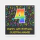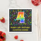 This fun, vibrant, and colourful birthday paper napkin design features a large number "4" having a rainbow spectrum gradient inspired pattern. It also features the message "Happy 4th Birthday,", and a personalized name. Part of the background features a colourful music notes and symbols pattern. Birthday themed paper napkins like this might be fun to use at a celebration being held to honour somebody who is celebrating their fourth birthday. [~Z0000421]