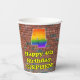 This vibrant and exciting urban street art and graffiti inspired birthday paper cup design features a large number “4” with a colourful rainbow spectrum gradient inspired pattern, along with the message “Happy 4th Birthday,”, and a customizable name. The background features a brick wall pattern. Vibrant, colourful paper cups like this might be fun to have at a birthday celebration/party being held in celebration of somebody’s fourth birthday. [~Z0000543]