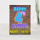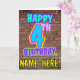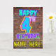 The front of this fun birthday greeting card design features the message “HAPPY 4TH BIRTHDAY,” having a vibrant, colourful, graffiti-inspired appearance, along with a custom recipient name. The background of the front features a brick wall inspired pattern. The inside has a customized birthday greeting message, or could perhaps be cleared and left blank if a message is to be written by hand instead. A fun, customizable birthday greeting card like this might be used to celebrate somebody’s fourth birthday. [~Z0000531]