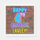 This fun birthday themed paper napkin design features the message “HAPPY 4TH BIRTHDAY,” having a colourful, vibrant, graffiti-inspired look, plus a customizable recipient name. The background features a brick wall inspired pattern. Birthday themed paper napkins like this might be used at a birthday party celebrating somebody’s fourth birthday. [~Z0000534]