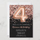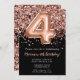 4th Birthday Invitation Black Rose Gold Glitter