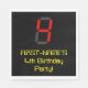 This silly and geeky birthday themed paper napkin design features a large number "4" having a red seven segment digital display inspired appearance, along with a customizable name and the message "4th Birthday Party!" in geeky retro style yellow text, on a black coloured background. Birthday themed paper napkins like this might be fun to use at a party being held to celebrate somebody’s 4th birthday. [~Z0000388]