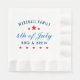 Stylish 4th of July holiday napkins can be fully-personalized for your special event. Design features classic navy, red, white, and blue colors with star accents.