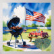 Get ready for a feast with this lively 4th of July poster! The watercolor style brings to life a backyard BBQ scene featuring a charcoal grill loaded with delicious burgers and hot dogs. A red-chequered picnic table awaits, and the American flag waves majestically under a sunny summer sky. Bold "4th of July BBQ Celebration" text in red, white, and blue font adds to the festive atmosphere. This 1600x1600px design is perfect for inviting guests or simply sprucing up your space for the holiday!