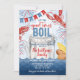 This 4th of July Crawfish Boil themed party invitation is designed to match our 4th of July collection! This theme is perfect for any patriotic, red, white, and blue themed seafood boil. This design features watercolor crawfish, corn, and potatoes with firework and wave accents and a blue watercolor background. The backside features a picnic buffalo plaid pattern that perfectly compliment the frontside.