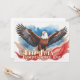 Powerful artwork featuring a bald eagle with outstretched wings and dynamic red, white, and blue elements—symbolic patriotic design for Independence Day.