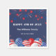 Add a personal touch to your Independence Day celebration with personalized paper napkins that will make your event unforgettable. With fireworks, blue and red stars and balloons, these napkins create a festive, patriotic atmosphere that is perfect for the occasion. You can customize the text to include your family name, year or a message like "Happy 4th of July."