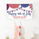 Celebrate the 4th of July in Style with this awesome banner featuring a festive design of red, white and blue buntings and flags. Add 3 lines of custom text to personalize. Great for 4th of July parties, parades, events, sales, weddings and more.