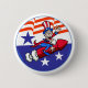 Show your patriotism with this 4th of July design with Uncle Sam riding on a rocket with a red, white and blue background.