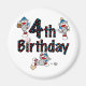 Three little sock monkeys wearing blue baseball caps are pitching, sliding, and up at bat on our Sock Monkey Baseball 4th Birthday design featuring sock monkeys and cool text that reads "4th Brithday".