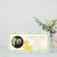 This 4x8 Sized adorable Rubber Ducky Bubbles Photo Birth Announcement is both trendy and chic. It's printed on smooth, vibrant, matte 110lb cover weight paper. Contains 50% recycled content. Perfect for your most formal invitations and event announcements. These come with standard white envelopes.
