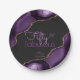 Serve your guest with this modern and stylish paper plate. It features a deep purple agate geode slice borders with watercolor textures and faux gold glitter accents in a dark charcoal grey background. The texts are a combination of light and bright purple colours and can be customized or changed using the edit menu.