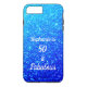 Designed with pretty, girly and beautiful blue glittery background and personalized text template for name which you can edit, this is perfect for the 50th birthday gifts or party favours!