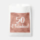 Celebrate the birthdays with a flair. "50 (age/year can be customized) and fabulous" in modern brush stroke white text on copper and hearts background.