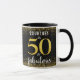 “50 and fabulous.” Be proud, rejoice and usher in 50 with style! This chic, playful, personalized, sparkly gold faux glitter confetti on a black background coffee mug will help make her birthday special. Matching and coordinating invitations, envelopes, labels, paper plates, napkins, and other items are also available. A great gift for a good friend!