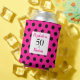 50 and Fabulous Bold Pink with Black Polka Dots Can Cooler