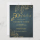 Luxe élégant vintage inspiré 50ème anniversaire modèle d'invitation de fête avec feuillage feuille or et script de typographie faux or sur un arrière - plan de tableau noir vieilli de minuit bleu foncé. — L'invitation convient à toutes les saisons des fêtes d'anniversaire jalons - trente, quarante, cinquante, soixante, soixante-dix, quatre-vingts, quatre-vingt-dix, cent - ou autres célébrations d'anniversaire. ++++++++++++++++ Il est entièrement modifiable et facile à personnaliser avec vos détails!