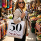 50 And Fabulous modern minimal birthday saying with bold typography and a clean black and white style. Perfect for confident women celebrating a milestone birthday with elegance, humor, and timeless design appeal.