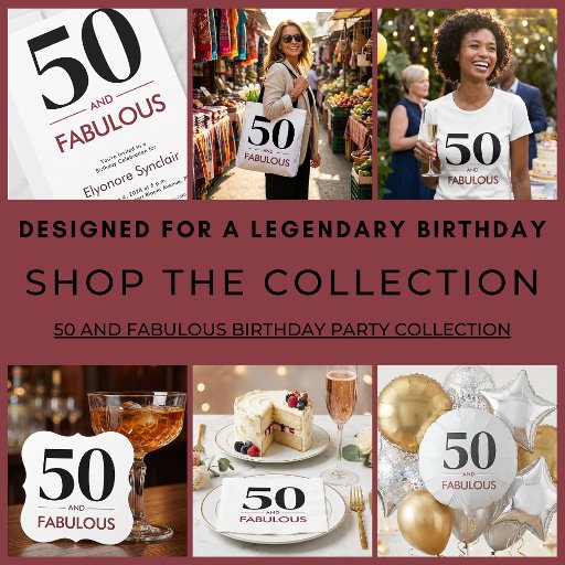 50 And Fabulous modern minimal birthday saying with bold typography and a clean black and white style. Perfect for confident women celebrating a milestone birthday with elegance, humor, and timeless design appeal.