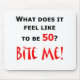 What does it feel like to be 50? Bite Me! Humourous design for the 50 year old who's not happy about turning 50 and a warning sign for others. Makes a great 50th birthday gift.