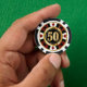 Las Vegas 50 Poker Chip in a dark red and gold Design Poker Chip. ⭐99% of my designs in my store are done in layers. This makes it easy for you to resize and move the graphics and text around so that it will fit each product perfectly. 📌 (Please be sure to resize or move graphics if needed before ordering) You can also "TRANSFER DESIGN" on other Zazzle products and adjust the design to fit most of Zazzle items. (button is down on the right side of the page) This design is made with high resolution vector and/or digital graphics for a professional print. 📌NOTE: (THIS IS A PRINT. All Zazzle product designs are "prints" unless otherwise stated under "About This Product" on the left side of this page) The design will be printed "EXACTLY" like you see it on the screen and on the product...so please make sure when you do your changes on the resizing of any of the graphics or text that it fits in the areas correctly and that your spelling and wording is how you like it to be in size, colour and font. If you have any questions about the "DESIGN ONLY" or need help please contact me at ✉ siggyscott@comcast.net or visit my store link: https://www.zazzle.com/store/designsbydonnasiggy (Copy and Paste) I'll be happy to help. 📌 ALL OTHER QUESTIONS (shipping, refund, the printing, the product, etc...) please contact Zazzle or the Maker ⭐DIRECTLY⭐. Thank you for the support and stopping by my store - DesignsbyDonnaSiggy. © Donna Siegrist⭐⭐⭐ ZAZZLE promises 100% satisfaction. If you don't absolutely love it, Zazzle will take it back! ⭐⭐⭐ 1-888-8ZAZZLE (1-888-892-9953) Phone hours: Mon - Fri: 9AM - 5PM PT (12PM - 8PM ET)