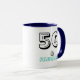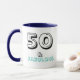 Célébrez un 50e anniversaire et une année de naissance avec cette 50 et fabuleuse tasse de café. Il a des poignées bleu foncé et est bleu foncé à l'intérieur, avec du texte en noir et bleu turquoise, sur un arrière - plan blanc. Le texte dit "50 & Fabulous". C'est un joli 50ème anniversaire de design pour célébrer le 50ème anniversaire ! Donnez-le comme cadeau ou obtenez-le pour vous-même. Certaines options peuvent être personnalisées / customisées.