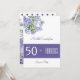 50 & Fabulous 50th Birthday Invitation. Écran moderne et élégant à fleurs violettes dans un coin avec une bannière violette près du fond. Typographie. Option de fête surprise. Pois violets sur le dos. Date, lieu, RSVP inclus. Lilac floral et vaporisateur floral succulent sur le dos.