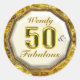 Montré est "Nom 50 & Fabulous" sur ces grands autocollants et enveloppes scellés. Ajoutez le nom d'anniversaire pour personnaliser ces grands autocollants ! 50 est dans un graphique de chiffres or classe. Montré est l'autocollant rond populaire. Ajouté pour améliorer ce sceau autocollant est un cadre vintage décoratif blanc et bordure en or avec un look 3d élevé. Riche et unique, mais abordable! Faites de grands faveurs et enveloppez les sceaux pour un cinquantième anniversaire d'or, 50ème anniversaire, réunion ou toute occasion spéciale.