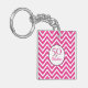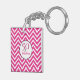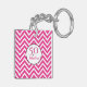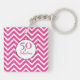 50 & Fabulous 50th Birthday Party Favour Cerise Pink & White Chevron Pattern Keychain.