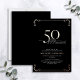 This beautiful invitation features hand lettered calligraphy artfully presenting 'fifty' in luxurious hand lettering against a black background, adorned with delicate swirls in the corners top and bottom in real rose gold foil, along with the name and the number 50. This image will have all your guests excitedly anticipating your fabulous fiftieth festivities!