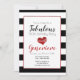 50 & Fabulous | Black & White Stripes Birthday Invitation
