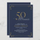 This beautiful invitation features hand lettered calligraphy artfully presenting 'fifty' in luxurious hand lettering against a navy blue background, adorned with delicate gold swirls in the corners top and bottom. This image will have all your guests excitedly anticipating your fabulous fiftieth festivities! If you're looking to really make a statement for a 50th birthday, choose this design, and get ready for all the compliments that may come your way. After all, every milestone should be celebrated with class and sophistication, and these invitations will deliver! For a fully coordinated event, contact designer for matching products. Copyright Surridge Design Co. for Elegant Invites, all rights reserved.