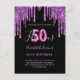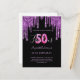 50 & Fabulous glitter drip black purple invitation Postcard