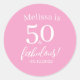 50 Fabulous Pink 50th Birthday Party Personalized Classic Round Sticker