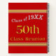 Red, White and Gold (Gold as 50th symbol) 50 year Class Reunion Ideas, Customizable Deluxe Notebook as a Class Reunion Sign In Book, alternative or to write their Memories of High School and or past high school reunions. You, or CALL Designer Linda: 239-949-9090 EST Monday through Friday 10am to 6pm or as I am available, to TRANSFER this Design to 1000 PLUS other, 50th class reunion gifts, 50th class reunion supplies, decorations and more. You or Designer Linda, can CHANGE the Red, Gold and White COLORS of the Background and Customizable Font/Text. Only I, can Change the GOLD 50th Class Reunion and Graduation Cap COLORS. Nice, 50th class reunion gift ideas.