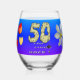 50e Anniversaire Coeurs bleu pourpre Vin Verre