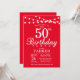 50e anniversaire Invitation avec lumière à cordes. Arrière - plan rouge. 13e 15e 16e 18e 20e 21e 30e 40e 50e 60e 70e 80e 90e 100e, n'importe quel âge.