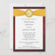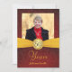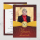 Invitations personnalisées pour les fêtes d'anniversaire — invitations photo de poche entièrement personnalisables avec arrière - plan rouge vintage et élégant bouton Monogramme sur ruban doré. Ajoutez votre propre photo et customisez le nom, la date et les détails de l'occasion heureuse. Parfait pour les photos contemporaines ou vintages. Des enveloppes de correspondance, des cartes postales et des cartes de remerciements sont disponibles.**IMPORTANT : Pour les cartes d'invitation standard 5 x 7. Autres tailles et styles disponibles dans la galerie.
